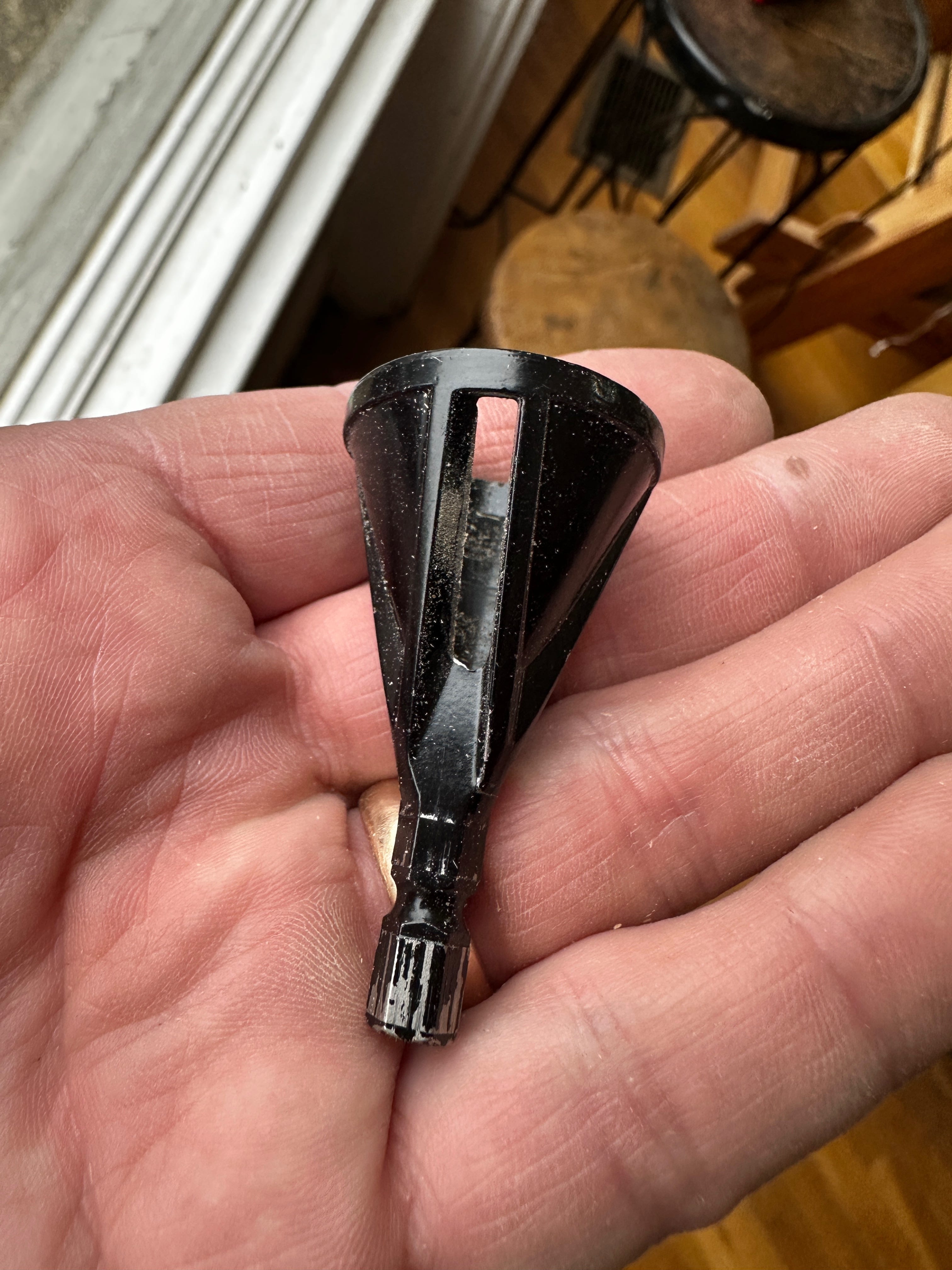 This $4 chamfer tool has saved many of my chair seats from being dinged during assembly – a quick chamfer on the end of the sticks makes them much less bitey. Plus, the tool is great for pointing pegs for drawboring or before pounding pegs through a dowel plate.