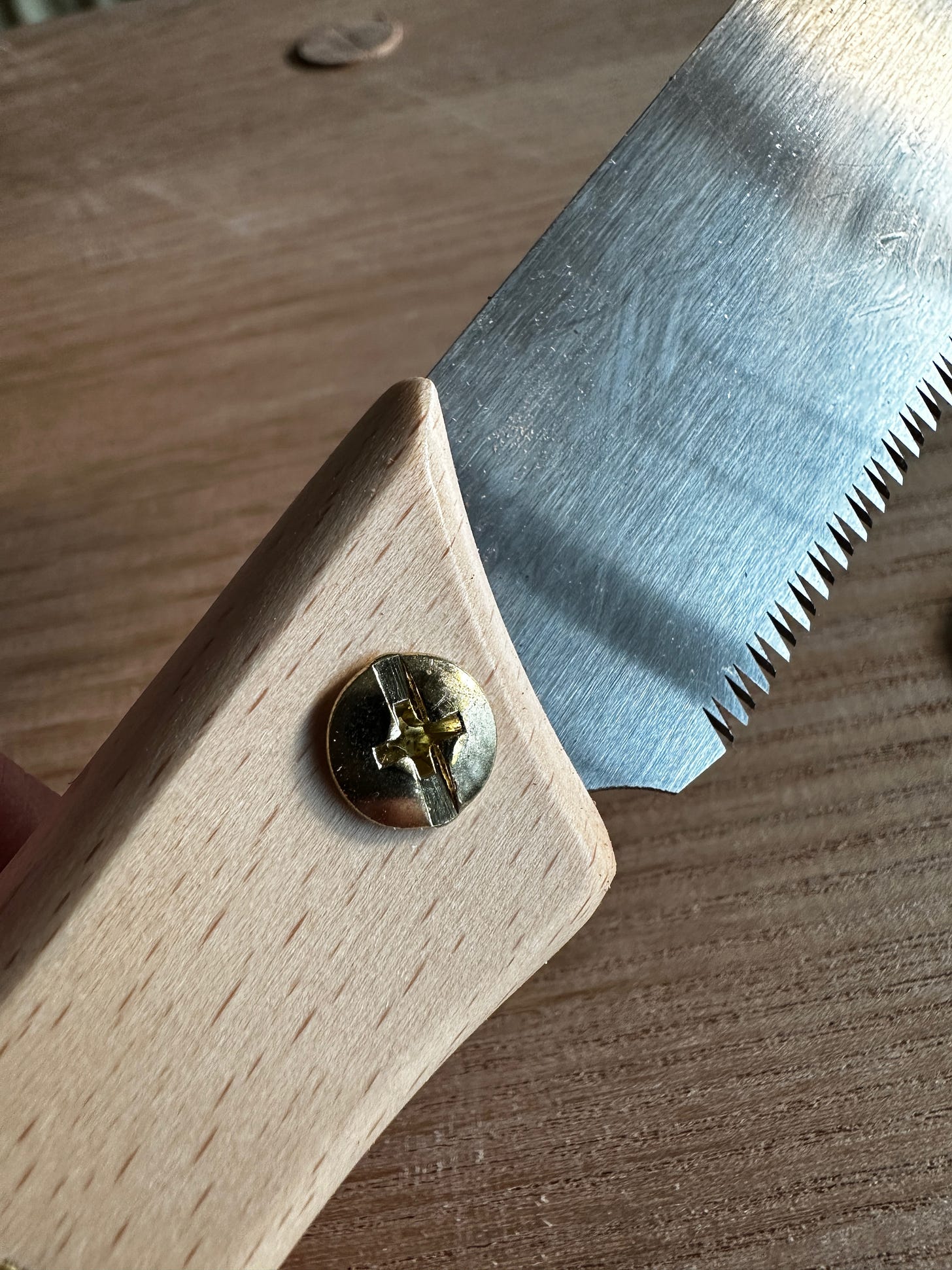 One more thing before we discuss the saws that I use. I don’t recommend flush-cutting saws that have teeth on both long edges of the blade. If your saw steers slightly off level, the trailing teeth will scar your work – and badly. Stick to the single-edge tools. (You are also less likely to cut yourself. There’s a reason we call these the “flesh-cutting saws” in our workshop.)