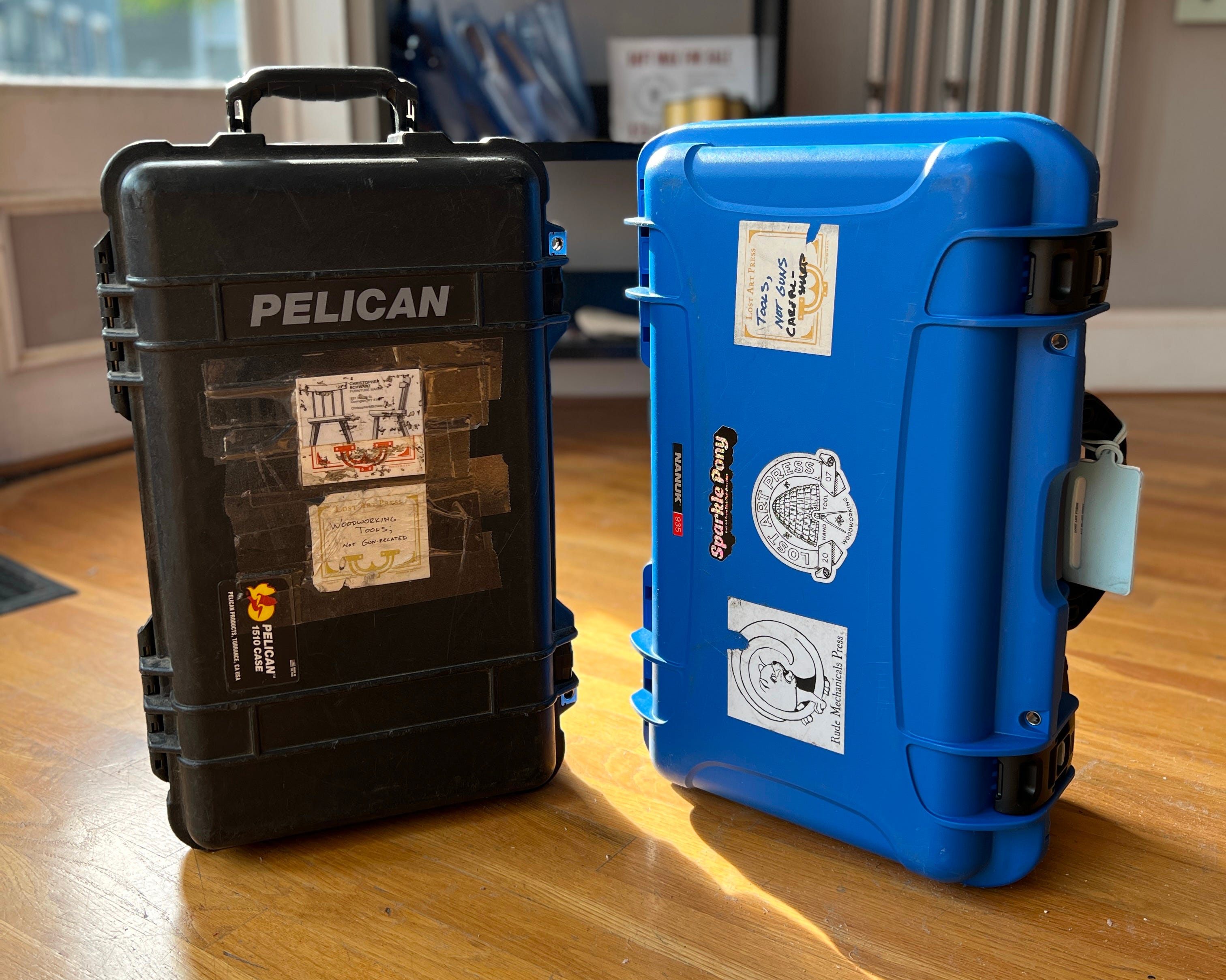 Chris (who weighs in below), has had his Pelican 1510 for about a million years; I’ve borrowed it for several trips during the last two decades. But last year we were both getting on planes to teach in different places at the same time, so I had to buy a case of my own. After a little research I settled on the Nanuk 935. And not just because I could get it in blue.2